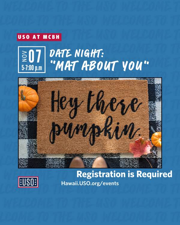 Join us for a cozy Holiday Doormat Painting Date Night designed just for Marine couples. Enjoy a relaxed evening filled with laughter, creativity, and festive cheer as you paint your own fall or Christmas-themed doormat.