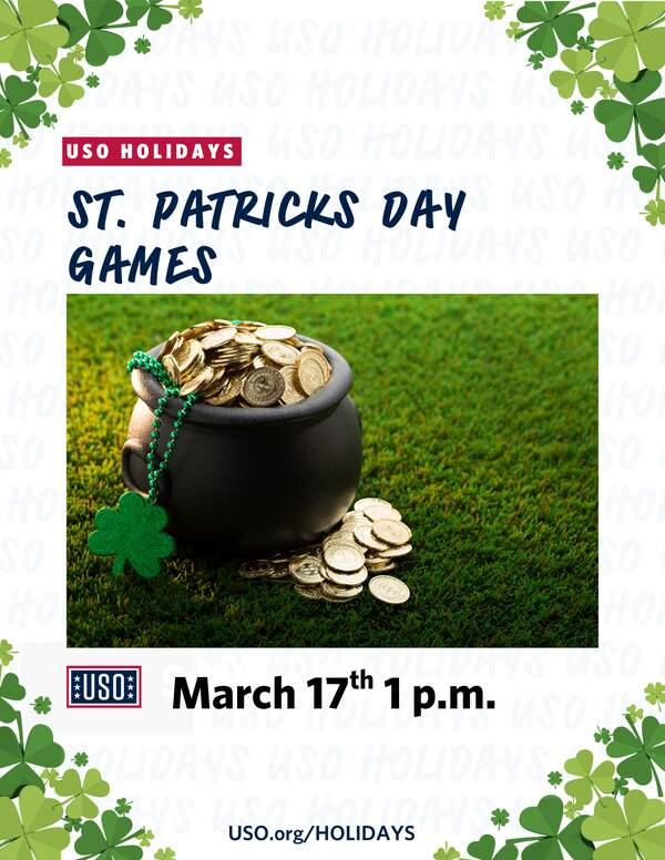 Solve a fun themed game for a chance to win a “pot of gold”. Test your luck and see if you can strike gold! 1 p.m.