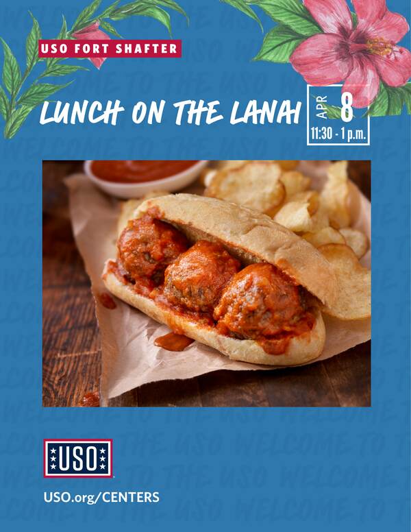 Lunch on the Lanai is a recurring program that brings service members together over a free, welcoming meal in a relaxed setting. Designed to provide a break from the day, the program fosters connection, boosts morale, and builds a sense of community among those who serve. Whether stopping by for a quick bite or staying to socialize, Lunch on the Lanai offers a warm, supportive space where service members can refuel, both physically and mentally.