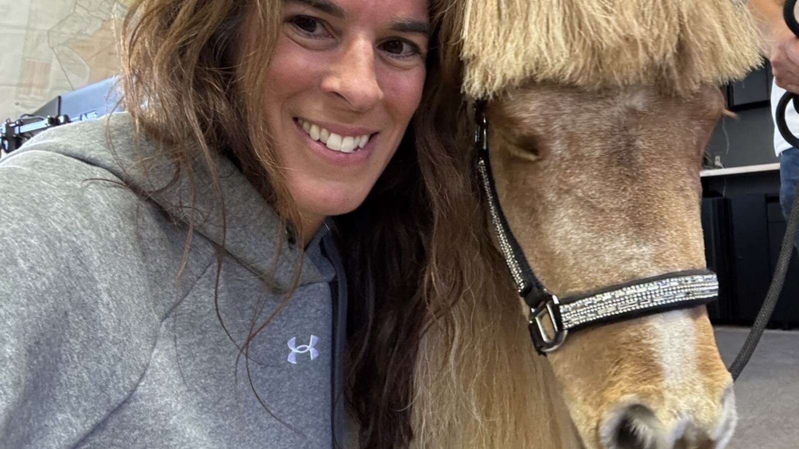 Center Operations Specialist Vicki Genna posing with local community therapy Horse Darby